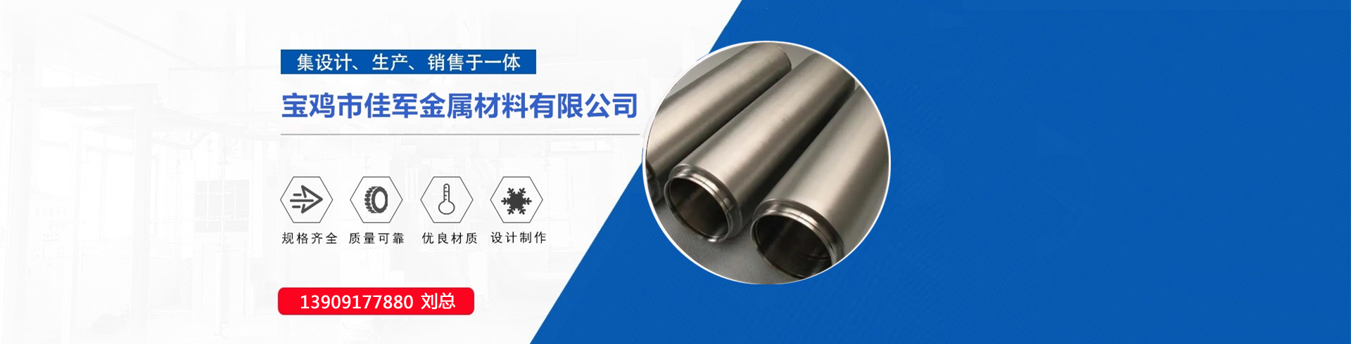寶雞市佳軍金屬材料有限成立于2008年,位于中國(guó)鈦谷之稱的陜西-寶雞,公司成立到現(xiàn)在已經(jīng)成為有色金屬行業(yè)的一枝獨(dú)秀。